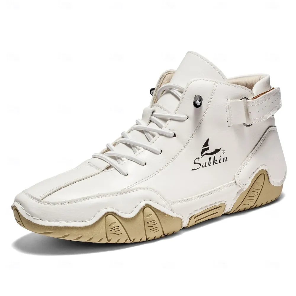 [Fabric]: Crafted from high-quality microfiber and PU lining, these men’s sneakers offer a sleek and modern appearance with a polished finish. The synthetic leather material ensures durability and style, adding a touch of sophistication to your urban wardrobe.[Fit]: Designed as high-top sneakers, they provide ample ankle support with a comfortable, snug fit. The round toe shape complements the overall design, ensuring a stylish and easy fit for everyday wear.[Design Highlights]: These sneakers stand out with their hand-stitched detailing and secure lace-up closure, enhanced by an adjustable buckle strap. The durable rubber outsole offers slip resistance and stability, making them ideal for various terrains. Their versatile design allows for pairing with both casual and semi-formal outfits.[Occasions]: Perfect for casual outings, urban explorations, and athletic activities, these shoes are designed for versatile use. Whether you’re navigating city streets or enjoying a weekend getaway, these sneakers blend comfort and style seamlessly.[Size Range]: Available in a variety of sizes, from US6 to US12 (EU38-EU45), these sneakers cater to a wide range of foot sizes, ensuring a perfect fit for every customer.