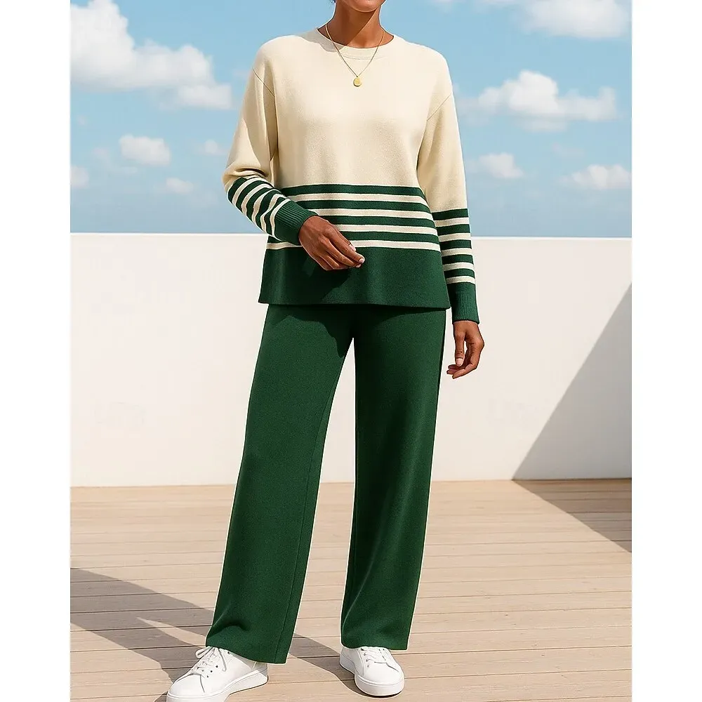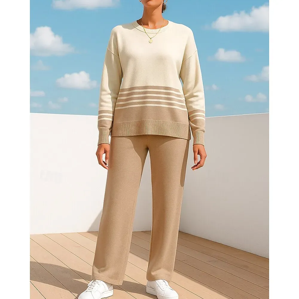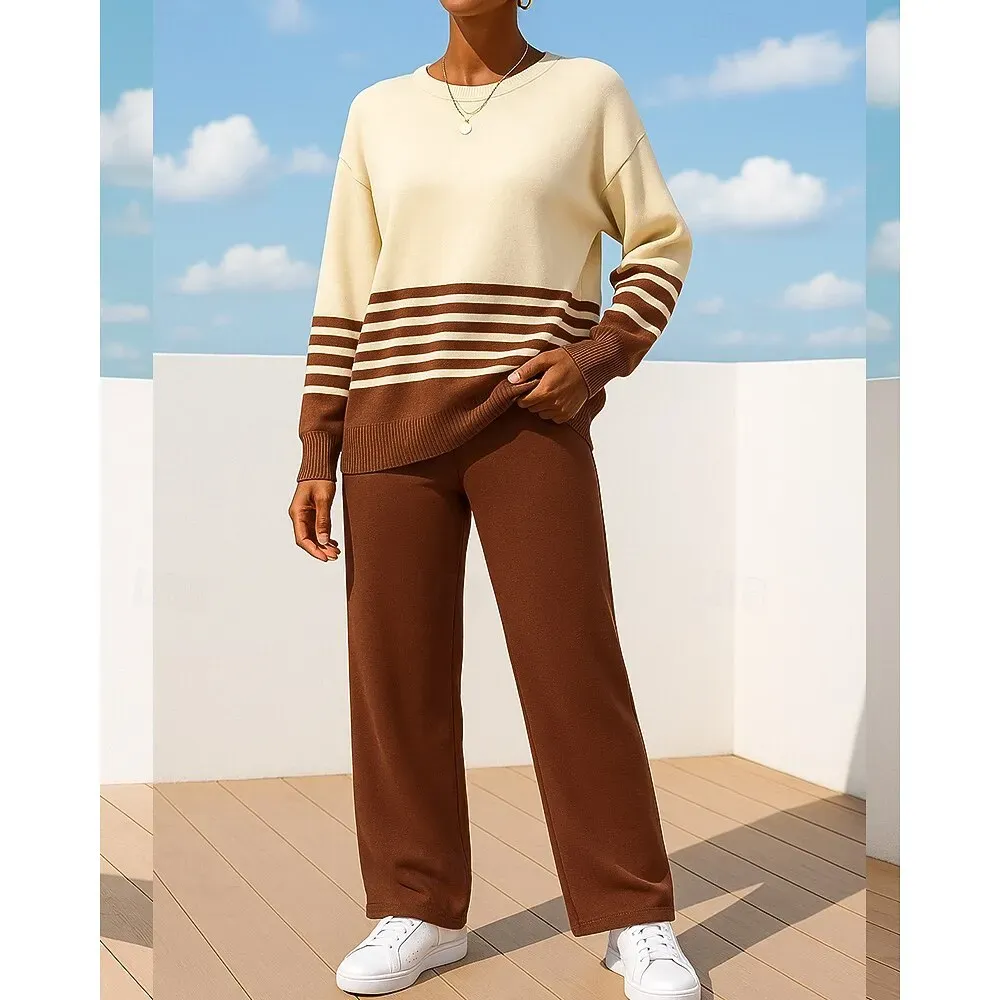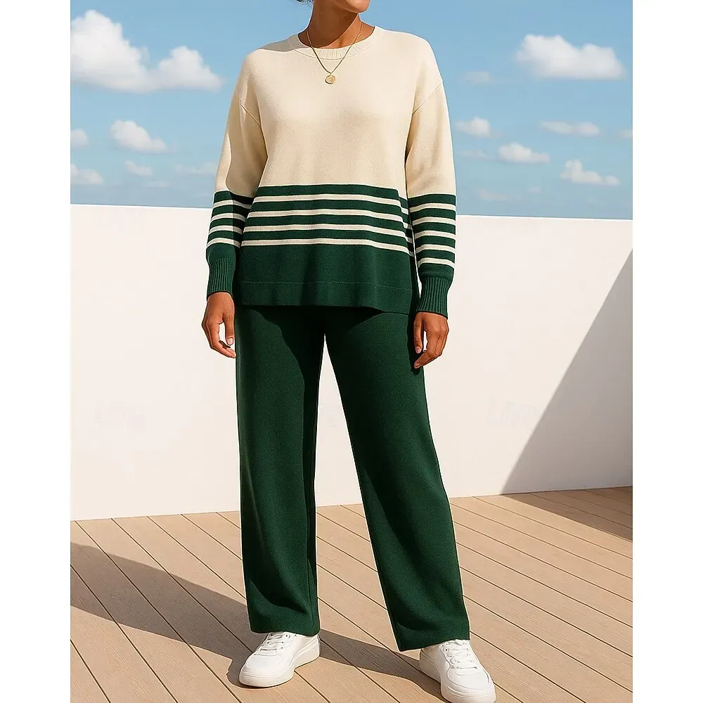 1.Gender: Women’s2.Occasion: Athleisure3.Season: Fall4.Elasticity: Micro-elastic5.Sleeve Length: Long Sleeve6.Design: Wide Leg7.Pattern: Striped